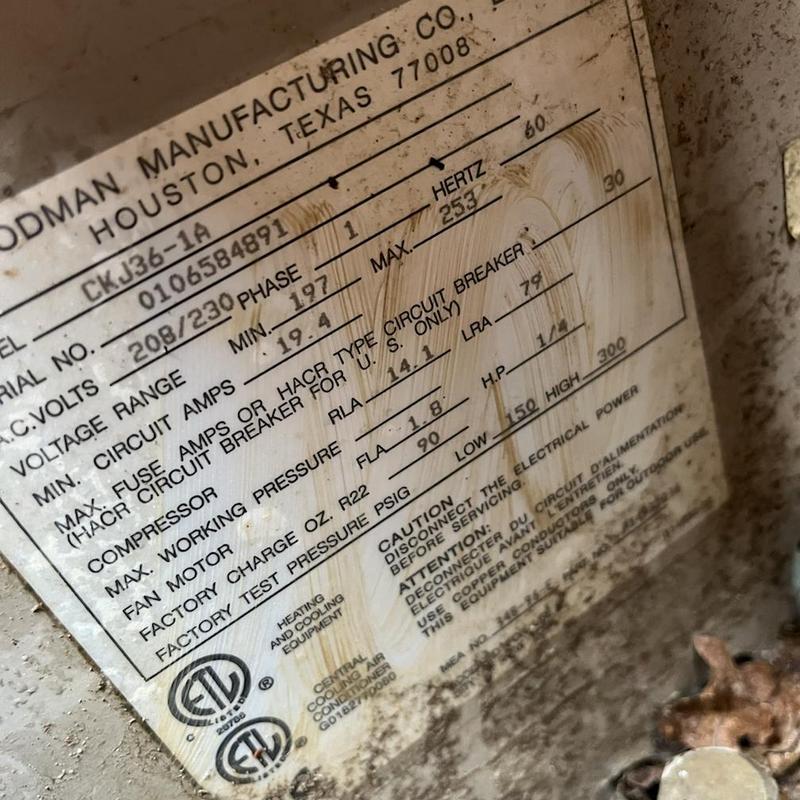 A 100 Guaranteed Heating and AC inspected a Goodman HVAC unit in Woodland, California. The technician identified a failing condenser fan motor that overheats within minutes. While the rest of the system functions normally, extended use in warmer weather may cause the motor to fail due to its 14-hour, 1100 RPM runtime.